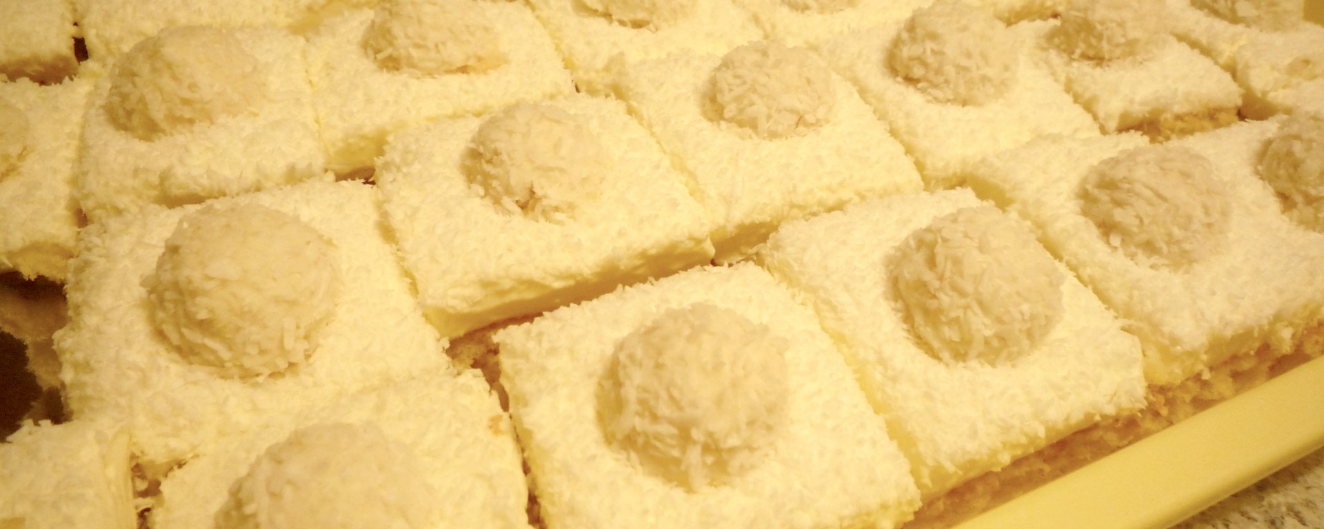 Auf dem Kuchen verteilen -> mit Kokosflocken bestreuen -> einige Stunden in den Kühlschrank stellen.