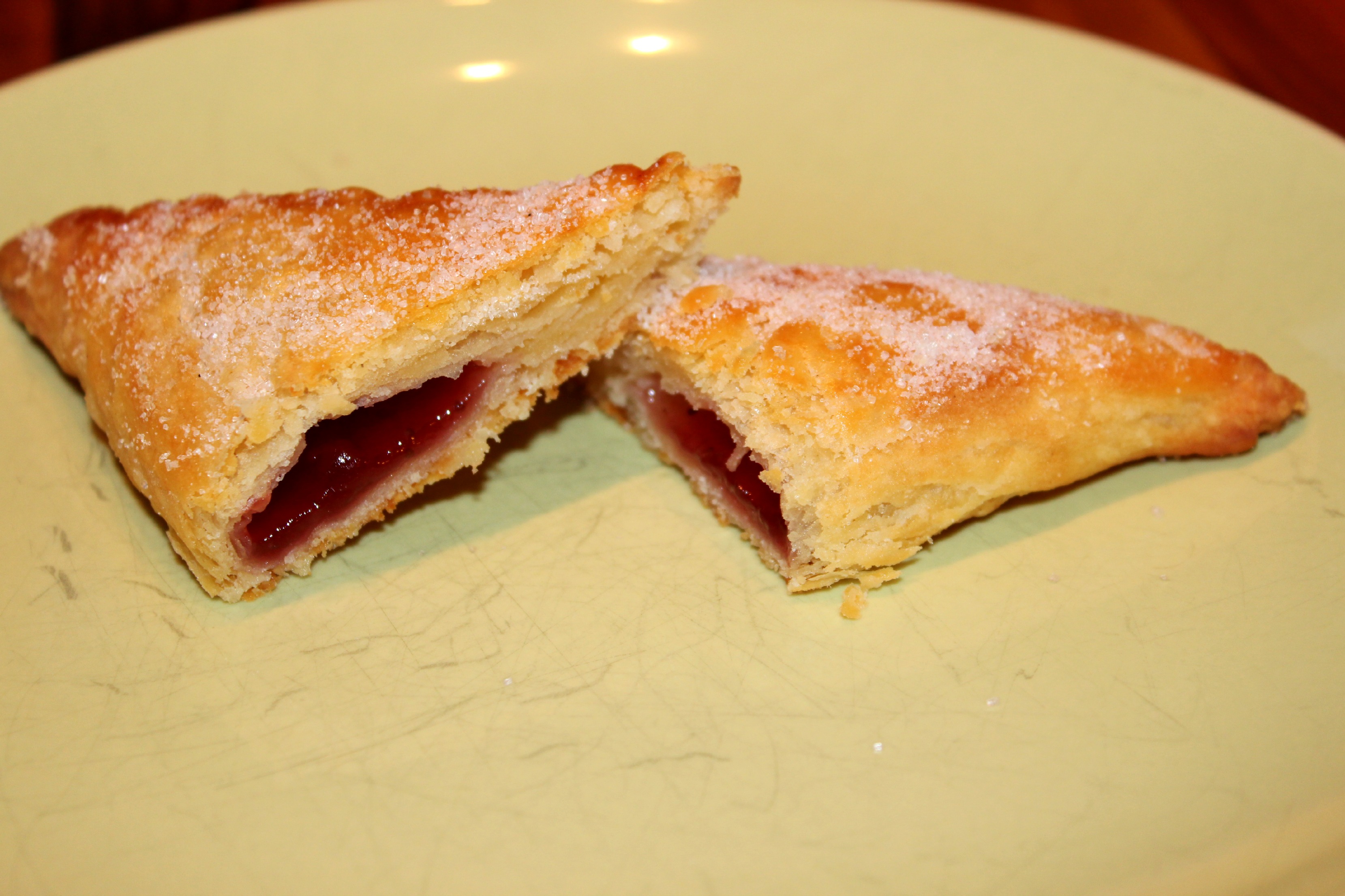 Danach 10×10 cm große Quadrate ausradeln, die Ränder mit Ei bestreichen und die Marmelade in die Mitte setzen. Danach in ein Dreieck falten, die Ränder gut schließen damit sie beim Backen nicht aufgehen und nochmals mit einem Ei bestreichen.