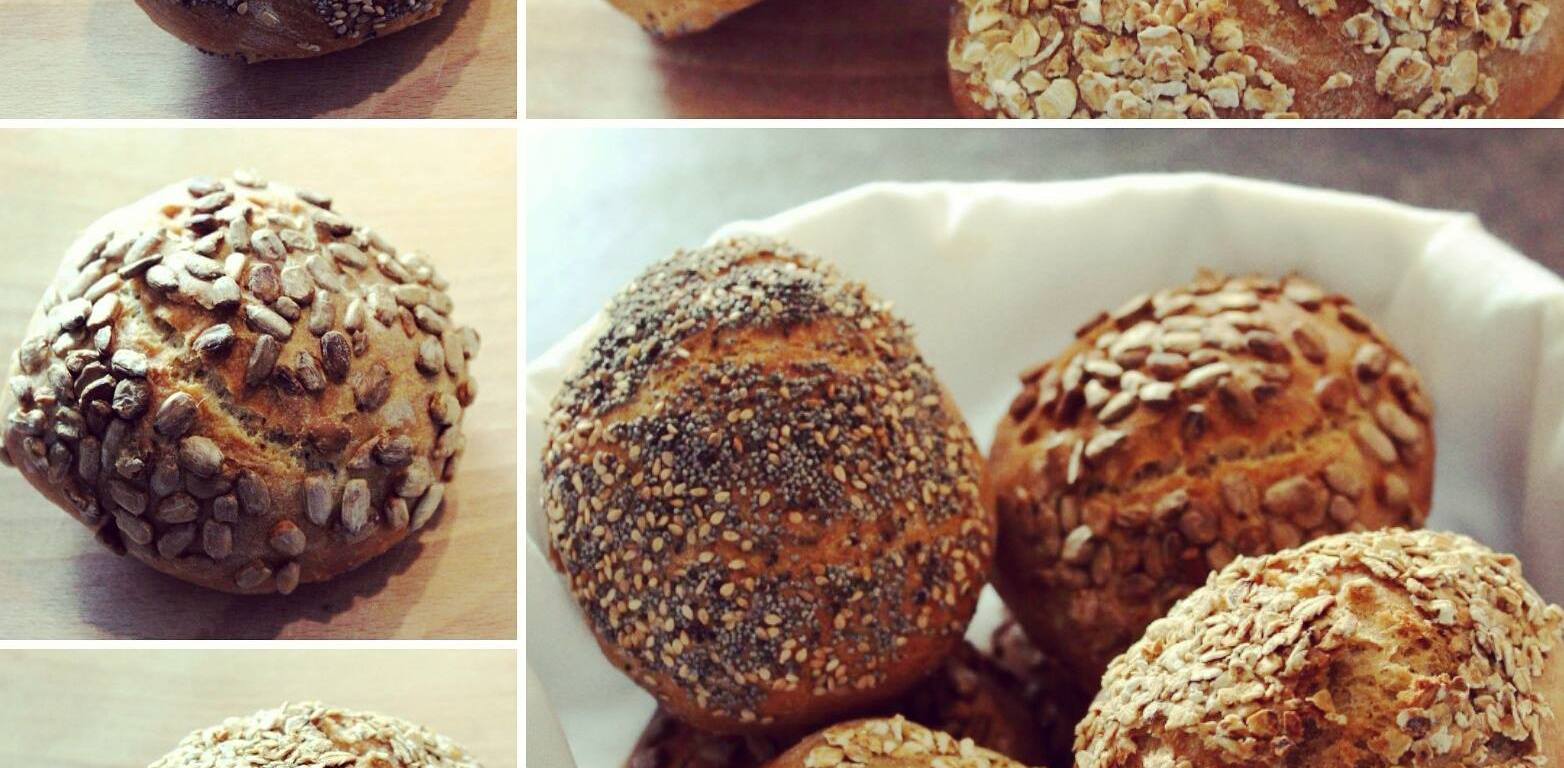 Ofen auf 210C° Ober-/Unterhitze vorheizen. Die Brötchen erneut mit Wasser besprenkeln, mit einem Messer leichte Kerben einritzen und im Ofen etwa 35 Minuten backen.